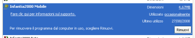 - dal Pannello di Controllo di Windows, nella sezione Installazione applicazioni, selezioni Infantia2000 Mobile e faccia clic su Rimuovi