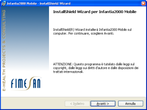 - Faccia clic sul seguente link per prelevare il file di installazione: ftp://www1.fimed.net/Download/Mobile/SetupInfantia2000Mobile.exe